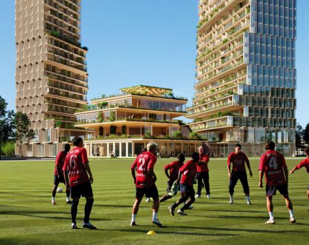 Das Preisgericht würdigte insbesondere den erstplatzierten Entwurf: Er überzeugt durch die drei polygonalen Baukörper, die sowohl städtebauliche Ordnung als auch Identität stiften. Die beiden Türme wirken von allen Seiten schlank und elegant, schaffen markante Adressen und fügen sich trotz Eigenständigkeit sensibel in das heterogene Umfeld ein. Das dritte Gebäude, der Pavillon, stärkt das Ensemble durch sinnvolle Angebote für die Nachbarschaft und einen gut proportionierten Bezug zur Bezirkssportanlage.